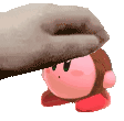The beloved pink character Kirby is gently petted on the head, showing affection and comfort in this cute animated sticker.