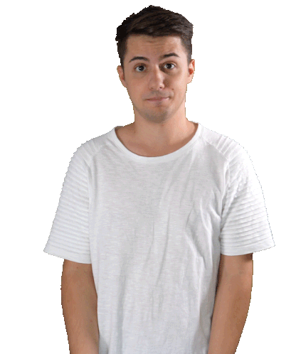 Kirkity, a young man in a white shirt, makes a playful throwing gesture with both hands, looking at the camera.