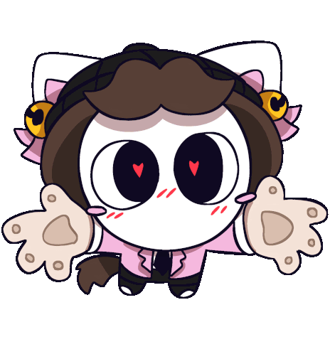 a cartoon drawing of a cat with big eyes and hearts in its eyes