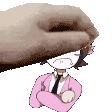 a cartoon girl in a pink jacket and tie is being pummeled by a large hand .