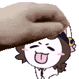 a cartoon character with a tongue sticking out is being propped up by a hand .