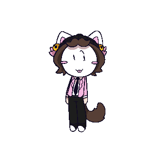 a pixel art drawing of a cat wearing a pink jacket and black pants