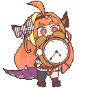 Kiryu Coco, the virtual dragon, holds an alarm clock, signaling it's time to wake up. A fun sticker for morning greetings.