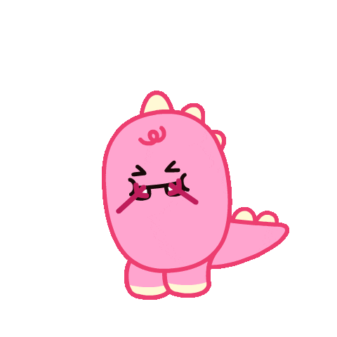 Dinosally, the cute pink dinosaur, blows a sweet kiss with a heart, expressing love and affection.