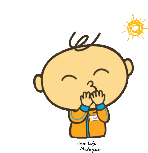 A cute Sun Life Malaysia baby character blows a kiss, spreading love and warmth with a sunny disposition.