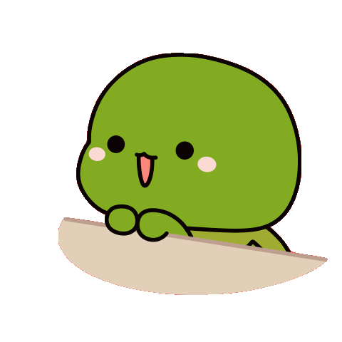 A cute, green Kermit-like character peeks over a surface, first smiling happily, then blowing a sweet kiss with a floating red heart.
