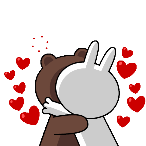A cute bear and rabbit couple share sweet kisses, filling a love meter that then turns off.