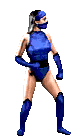 Kitana, the iconic Mortal Kombat fighter, stands in a classic pixel art pose, ready for battle in her blue attire.