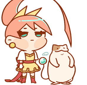 Magical Girl Mio with a deadpan expression and her plump, indifferent cat companion, created by Kitkatandahalf.
