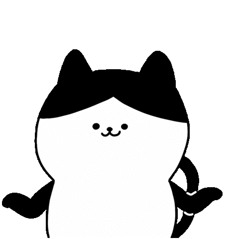 A cute black and white cartoon cat shrugs its shoulders with an indifferent expression, conveying a "whatever" or "so what" attitude.