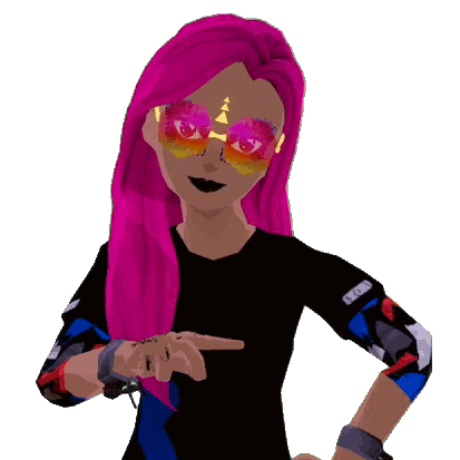 Kjstrong Canessa avatar with vibrant pink hair and sunglasses, performing ASL gestures and showing knuckle tattoos.