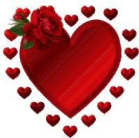 A vibrant red heart adorned with a rose, surrounded by smaller shimmering red hearts, symbolizing love and affection.