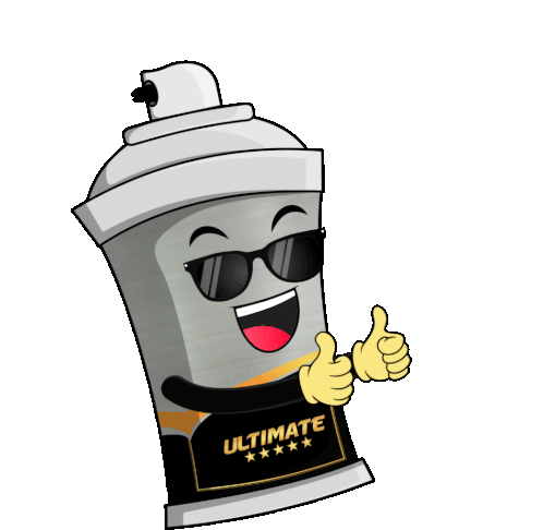 A cool spray paint can character with sunglasses gives a double thumbs up, exclaiming "Klimaks Beud!" with excitement.