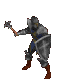 A retro pixel art sticker featuring a knight in armor, wielding a hammer and shield, in classic Geocities style.