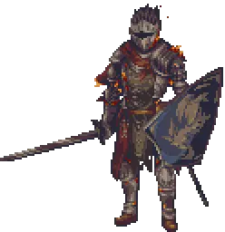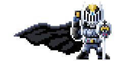 a pixel art of a knight with a cape and a sword