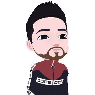 Animated avatar with beard claps hands, wearing a black and red jacket with 'DOPE DOR' text.