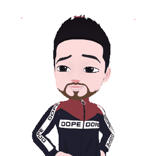 A cartoon man with a beard and a 'DOPE' jacket poses confidently, asking 'HOW YOU DOIN'?' with floating hearts.