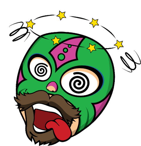Animated sticker of Compa Bus delivering a powerful knockout punch, perfect for Lucha Libre fans and expressing victory.