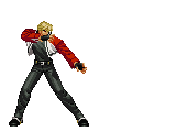 Rock Howard from KOF performs a dynamic special move with a purple energy effect in this pixel art sticker.