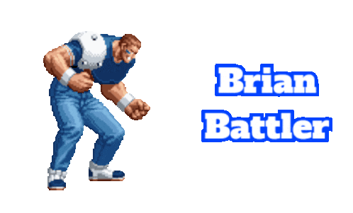 Brian Battler, the American football player from Kof94, in a pixel art animated sticker, ready for battle.