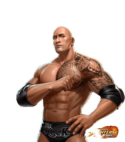 Dwayne 'The Rock' Johnson in his iconic wrestling attire, striking a powerful fighting pose from KOF ALLSTAR.