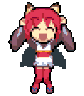 Kohaku, the character from Melty Blood and Tsukihime, performs a lively pixel art dance with cat ears and red hair.