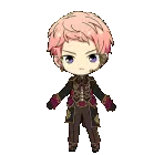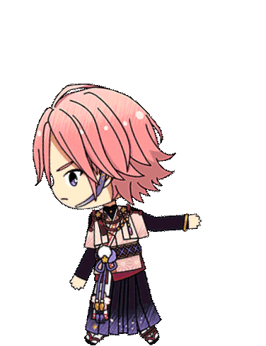 Kohaku Oukawa from Ensemble Stars, a chibi character with pink hair, dances cheerfully amidst cherry blossoms.