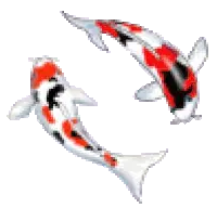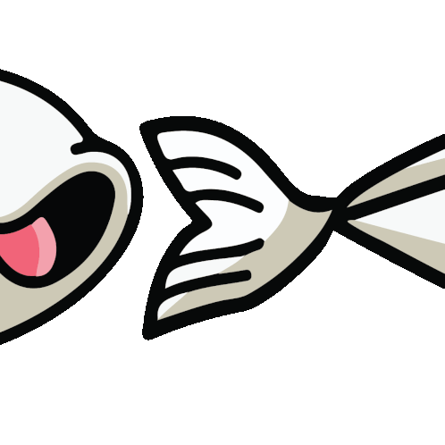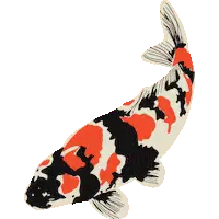 Animated cartoon koi fish tail wiggling, showing its orange and white spots as it swims gracefully.