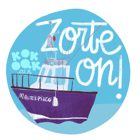 A hand-drawn boat named Masterpiece with "Zorte On!" and "Good Luck" text, featuring Kokoak and Mugi Muki.