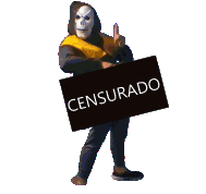 a man in a mask is holding a sign that says censored