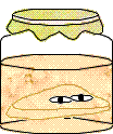 A lively cartoon sticker featuring a creature with eyes emerging from a kombucha jar, playfully pushing up its cloth lid.