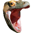 A Komodo Hype Komodo Chomp dragon roars with its mouth wide open, showing sharp teeth.