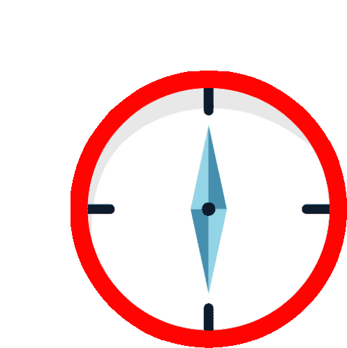 A vibrant, animated compass sticker with a red ring and blue needle, subtly rotating to indicate direction.
