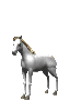 A pixelated white horse with a golden mane rears up on its hind legs, then returns to standing, against a plain white background.