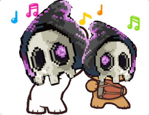 Kovert Bears Project sticker featuring two pixel-art skull-headed figures dancing playfully with musical notes.