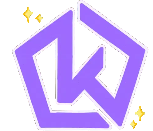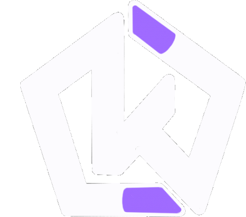 Animated logo for Kreation Kpop, featuring a stylized purple and white design within a pentagon shape.