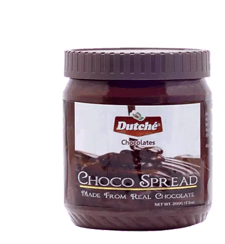 An animated sticker featuring a Krisper Dutche chocolate bar in its light blue packaging, rotating into view.
