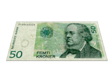 A Norwegian 50 Kroner banknote, featuring Peter Christen Asbjørnsen and 'Norges Bank'.