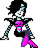 a pixel art drawing of a person in a pink and black outfit