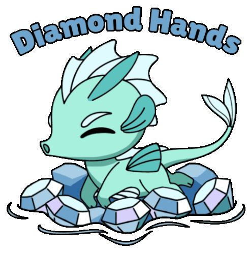 A cute Kryptomon Kmon dragon with diamond hands, sparkling and holding strong.
