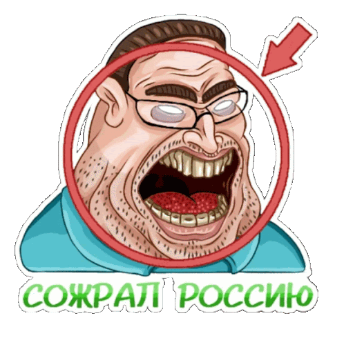 a sticker of a man with glasses and a red circle around his mouth that says " sokpai poccuio "