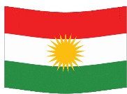 Animated sticker featuring the vibrant red, white, and green Kurdish flag with a golden sun, gently waving.