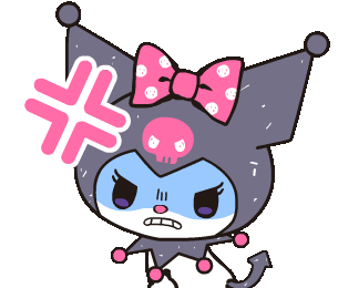 Kuromi, the Sanrio character, is depicted with an intensely mad expression, a pink skull, and an "angry" symbol.
