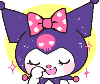 Kuromi, the mischievous Sanrio character, shows a cute, smug expression with closed eyes and a playful sparkle.