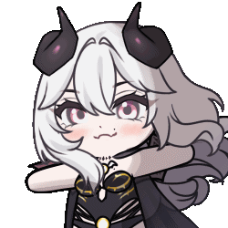 Kuru Kuru Cherri, a character with long white hair and small horns, sways her head gently.