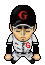 Hyuuma Hoshi from Kyojin no Hoshi, depicted in pixel art as a baseball player in a black cap with a red 'G'.