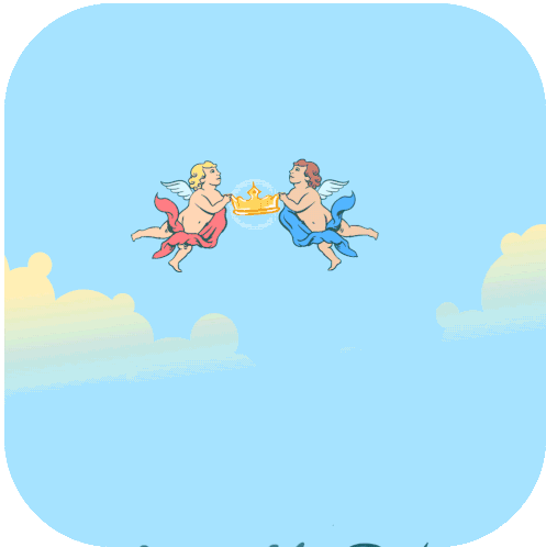 Animated sticker depicting the Assumption of the Virgin Mary, with cherubs holding a crown and the text "Asunción de la Virgen".
