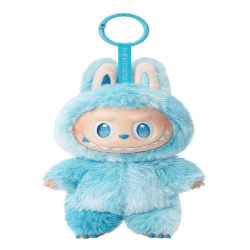 Animated sticker of Labubu from The Monsters, a fluffy blue plush toy in a monster costume with bunny ears.
