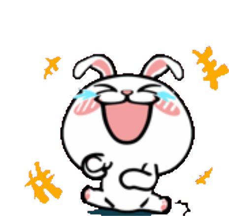 A cute rabbit sticker laughing out loud with joy, expressing amusement and happiness with a big, open-mouthed smile.
