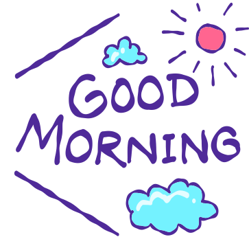 A cheerful hand-drawn sticker featuring the words 'GOOD MORNING' with a sun and clouds, from Lamronspace Tantan.